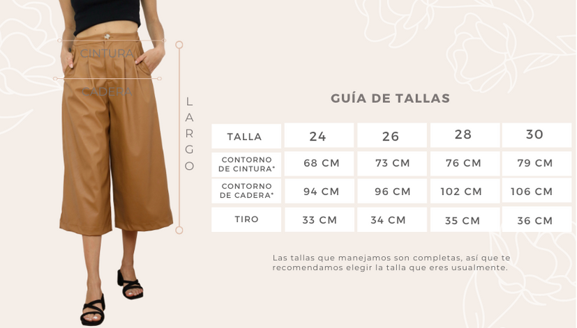 ♡ Blanca está usando talla 24. Ella mide 1.63, su contorno cintura es de 66 cm y de cadera de 89 cm aproximadamente.